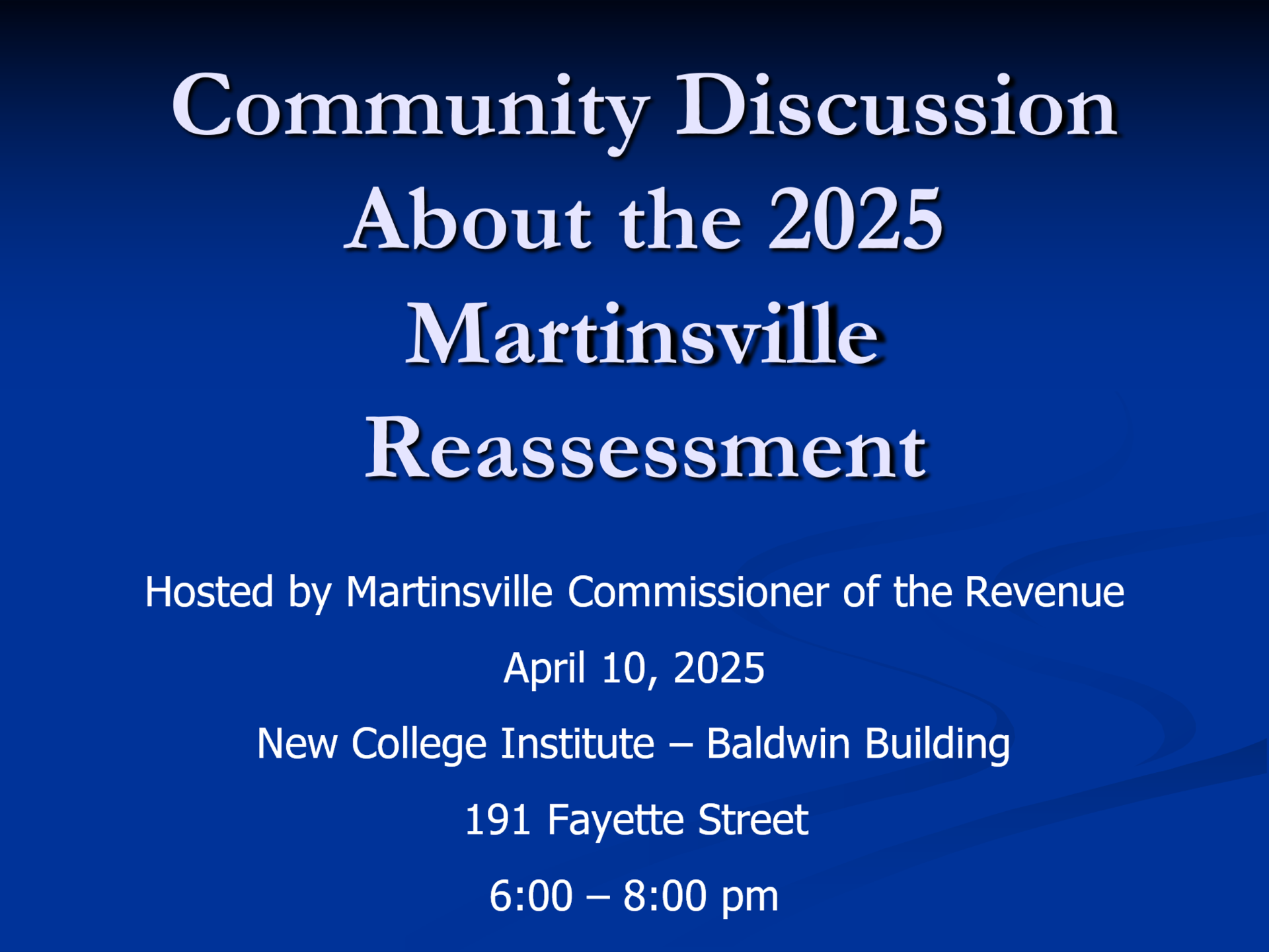 JOIN US for a Community Discussion about the 2025 Tax Reassessment hosted by the Martinsville Commissioner of the Revenue!